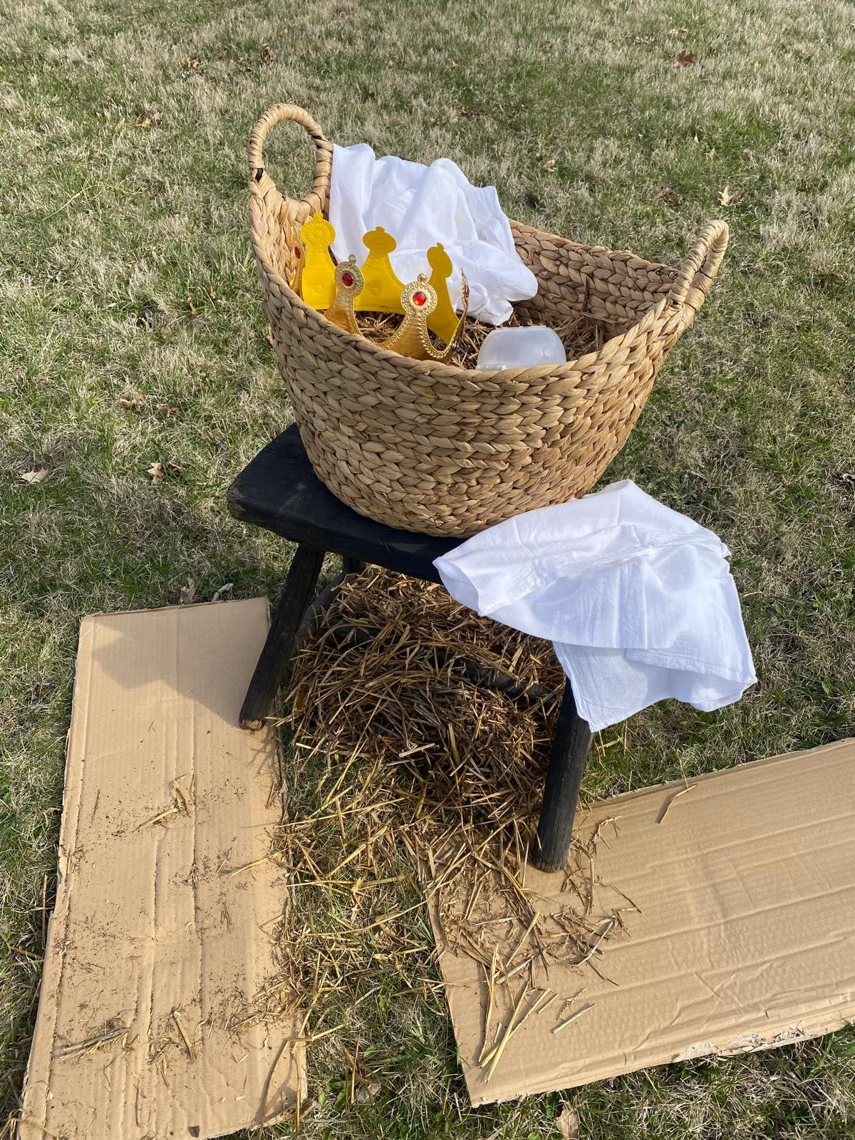 Take a moment and read the scripture from Luke 2. Feel free to kneel down by the manger if you are led. Take a cloth from the container that is perfumed by frankincense. Listen to the sounds of the newborn baby that was born to be our King.